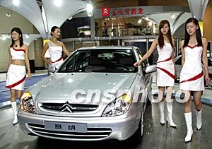 北京國(guó)際汽車零部件及相關(guān)產(chǎn)品展覽會(huì)和商用車展覽會(huì)九月二十五日在北京開(kāi)幕,300多家廠商參加此次展覽,東風(fēng)雪鐵龍賽納轎車在美女陪伴下登場(chǎng)。中新社記者:趙振清