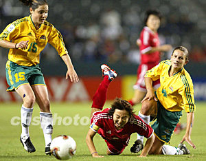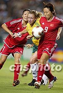 美國當(dāng)?shù)貢r間9月25日19點(diǎn),參加2003年第四屆女足世界杯D組比賽的中國隊在洛杉磯南部卡森的The Home Depot Center體育場舉行小組賽的第二場比賽,對手是澳大利亞隊。上半場中國隊先失一球,下半場開場白潔將比分扳平。隨后,中國隊占有優(yōu)勢但沒能抓住機(jī)會擴(kuò)大戰(zhàn)果。作者:劉占坤