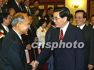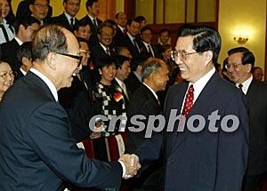 中新社北京九月二十七日電(記者邢利宇)中國國家主席胡錦濤今天下午在人民大會堂會見了以霍英東為團(tuán)長的香港工商界知名人士訪京團(tuán)。