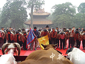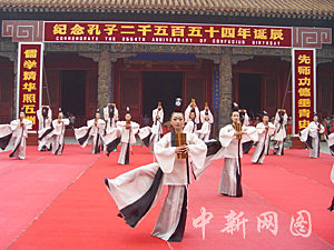 中新網(wǎng)曲阜9月28日電(記者 王魯平 毛公強(qiáng))幽雅的古樂在空中回蕩,盛裝的少女在翩翩起舞,來自海內(nèi)外的東方文化崇拜者及孔子的后裔,今天上午在孔子故里曲阜孔廟大成殿前隆重舉行莊嚴(yán)肅穆的儀式,紀(jì)念孔子誕辰兩千五百五十四年。
