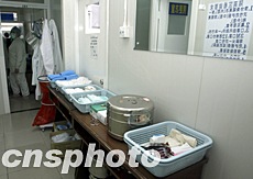 陪同病人來的“妻子”被擋在了發(fā)熱門診外。那里的首診醫(yī)生對(duì)他問診,做了檢查、化驗(yàn)、拍胸片,結(jié)果是肺部有陰影,白細(xì)胞低。組織專家會(huì)診。五位專家認(rèn)為不排除疑似SARS的可能。病人被留在發(fā)熱門診內(nèi)的觀察病房,而其病歷摘要從發(fā)熱門診內(nèi)傳真到醫(yī)院的醫(yī)務(wù)處。醫(yī)院馬上向北京市和東城區(qū)的疾病預(yù)防控制中心報(bào)告。