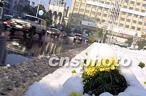 中新社烏魯木齊九月二十八日電(記者程勇 冉慶慈)昨夜一場大風,讓烏魯木齊的氣溫降至零下一攝氏度,早上起床發(fā)現(xiàn)窗外已是白雪皚皚,整個烏魯木齊處于一片銀裝素裹之中。大雪使今日烏魯木齊市的道路交通受到一定的影響,個別街道汽車排起長隊等待通行。