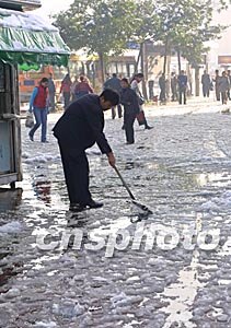 二十八日上午十點,太陽漸漸升高,氣溫有所上升,積雪開始迅速融化。馬路上融水成河,仿佛雨水充沛的夏日情景。路旁樹木也大滴大滴地落著雪水,不時還有雪團掉下。走在樹下的行人們紛紛撐起了雨傘。于是,在一片白雪皚皚中,淙淙流水、綠葉與花傘點綴其中,一幅頗有時空交錯感的畫卷展現(xiàn)在烏市。即便是對十月飄雪習(xí)以為常的烏市市民也對這一場突如其來的大雪嘖嘖稱奇。