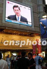 香港10月2日公布SARS專家委員會(huì)調(diào)查報(bào)告,衛(wèi)生福利及食物局局長楊永強(qiáng)為SARS爆發(fā)初期,醫(yī)護(hù)制度未能應(yīng)付疫情蔓延及溝通不足,向市民和死難者家屬道歉。圖為大批市民在電視銀幕前駐足關(guān)注有關(guān)新聞。中新社記者:洪少葵