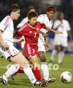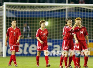 過(guò)早的失球并沒(méi)有讓中國(guó)隊(duì)自亂陣腳,中國(guó)隊(duì)依靠整體配合向?qū)Ψ疥嚨匕l(fā)起猛攻,創(chuàng)造了多次得分機(jī)會(huì)。第八分鐘,中國(guó)隊(duì)在對(duì)方禁區(qū)右前方獲得一次任意球機(jī)會(huì),孫雯主罰,以一記漂亮的“香蕉球”越過(guò)人墻,球打在橫梁上彈出;十二分鐘,白潔在對(duì)方小禁區(qū)前沿頭球攻門偏出;十六分鐘,孫雯在對(duì)方禁區(qū)內(nèi)得球,連續(xù)晃動(dòng)后一腳打門,球貼著球門立柱出了底線;三十六分鐘,孫雯在非常困難的情況下將球傳給插入禁區(qū)的畢妍,后者倉(cāng)促起腳,錯(cuò)失了一次破門的絕佳機(jī)會(huì)。