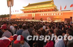 圖:夜幕下天安門城樓前人如潮涌
