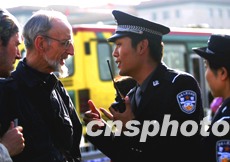 參加國慶值勤的北京警察學(xué)院學(xué)員,四日在天安門廣場(chǎng)為外國游人解答問題!笆弧逼陂g首都警方加大了旅游景區(qū)的值勤力量,以確保游客安全。中新社記者:宋吉河