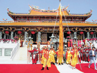 澳門特區(qū)行政長官何厚鏵主持天后宮的落成儀式。