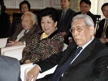 陳至立希望大師們“常回家看看”。朱德群說,最近我剛?cè)ミ^上海,上海變化很大。上海大劇院今年八月過五歲生日,朱先生把一生來創(chuàng)作的最大油畫捐贈給了該劇院;一九三七年來法留學(xué)的李治華,現(xiàn)定居在法國里昂。他告訴陳至立國務(wù)委員:去年回了一趟中國,并和中國現(xiàn)代文學(xué)館建立了聯(lián)系,剛剛還接待了那里來的客人。李治華和他的法國夫人雅歌先后用三十多年時間合作翻譯曹雪芹巨著《紅樓夢》,于一九八一年在巴黎出版,轟動歐洲。