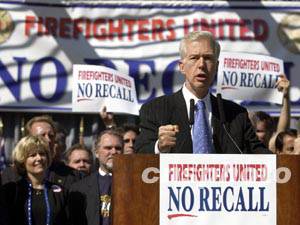 現(xiàn)任加州州長(zhǎng)戴維斯六日下午到舊金山聯(lián)合廣場(chǎng)與消防員集會(huì)為反對(duì)罷免作最后沖刺。舊金山市長(zhǎng)布朗和部分市參議員一道參加了集會(huì)。鬧得沸沸揚(yáng)揚(yáng)的加州州長(zhǎng)選舉明晚將見分曉,如果現(xiàn)任州長(zhǎng)戴維斯被罷免,新州長(zhǎng)將水落石出。但戴維斯表示有信心在周三繼續(xù)去州長(zhǎng)辦公室上班。作者:陳鋼