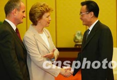 中新社北京十月十日電(記者張朔)中國(guó)全國(guó)人大常委會(huì)委員長(zhǎng)吳邦國(guó)今天在北京人民大會(huì)堂會(huì)見愛爾蘭總統(tǒng)麥卡利斯,就進(jìn)一步全面推動(dòng)中愛兩國(guó)的交流與合作進(jìn)行了友好交談。吳邦國(guó)表示,中國(guó)新一屆領(lǐng)導(dǎo)集體重視發(fā)展同歐盟、同愛爾蘭的全面合作。