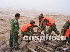 面對嚴峻形勢,黃河防總科學調(diào)度小浪底、三門峽、故縣、陸渾水庫,通過四庫聯(lián)調(diào),有效地削減了渭河5次洪水過程。但是由于黃河下游河道長時間過水,局部河段河勢發(fā)生變化,導致下游控導工程出現(xiàn)大量險情,特別是近年來在旱地上的新修工程。目前,蘭考至東明黃河大堤嚴重偎水,偎水長度近50公里。尤其是山東東明河段大堤1/2至2/3被洪水淹沒,洪水最深達6米,偎水深度創(chuàng)歷史最高,情況十分危急。