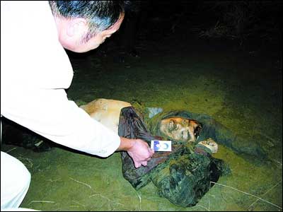 今晨1時(shí)10分,省公安廳經(jīng)痕跡物證鑒定,確定尸體就是謝先榮。