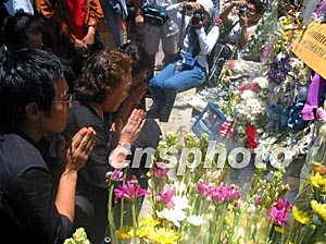 10月13日,巴厘島爆炸案的幸存者和死難者的親屬們舉行儀式,為死難者祈禱。2002年10月12日,印尼巴厘島發(fā)生恐怖襲擊爆炸案,共有二百余人在那次事件中遇難。Ic/cnsphoto攝
