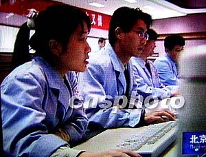 據(jù)北京電視黃金時(shí)段新聞報(bào)道,位于北京的中國(guó)航天指揮控制中心,日前進(jìn)行了神舟五號(hào)載人飛船的最后一次合成演練,準(zhǔn)備工作一切正常。中新社記者:賈國(guó)榮