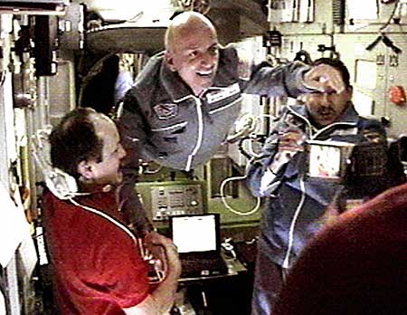 2001年4月30日,第一位太空游客、美國(guó)人蒂托(中)快樂(lè)地進(jìn)入國(guó)際空間站,開始了他為期一周的太空觀光生活。太空旅游的開辟使得普通人也能夠像宇航員一樣暢游星際之間。新華社圖