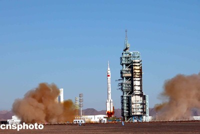 北京時(shí)間十五日上午九時(shí)整,“神舟”五號(hào)載人飛船由“神箭”——“長(zhǎng)征二號(hào)F”運(yùn)載火箭從此間載人航天發(fā)射場(chǎng)發(fā)射升空,“神箭”升空十多分鐘后,中國(guó)載人航天工程指揮部總指揮宣布,“神舟”五號(hào)載人飛船已成功進(jìn)入預(yù)定軌道,發(fā)射取得成功。