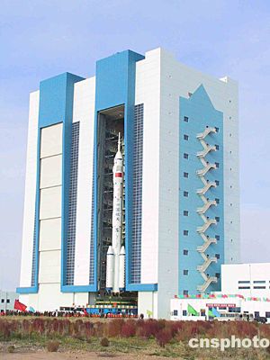 被稱為“亞洲第一門”的酒泉衛(wèi)星發(fā)射中心載人航天發(fā)射場(chǎng)總裝測(cè)試廠房大門開啟后,“神舟”五號(hào)載人飛船船箭塔組合體開始向發(fā)射塔架垂直轉(zhuǎn)運(yùn)。中新社記者孫自法攝