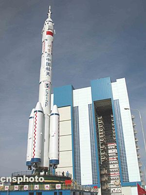 “神舟”五號載人飛船船箭塔組合體轉(zhuǎn)運(yùn)途中