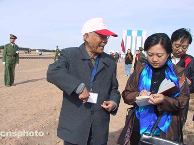 八十八歲高齡的中國老一輩航天人任新民老先生在“神舟”五號載人飛船垂直轉(zhuǎn)運現(xiàn)場興致勃勃地接受記者采訪。中新社記者孫自法攝