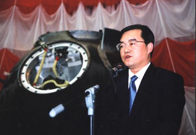 張慶偉在“神舟”四號(hào)飛船返回艙前