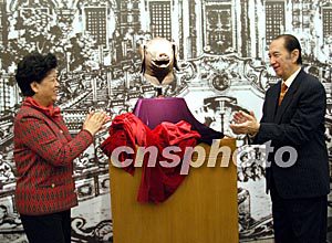 這,就是何鴻燊博士捐款六百多萬元人民幣,自海外搶救的圓明園豬首銅像。國(guó)務(wù)委員陳至立與何鴻燊共同為這件回歸的國(guó)寶揭幕。