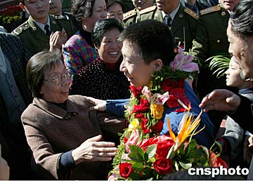 楊利偉凱旋 妻兒機(jī)場迎接