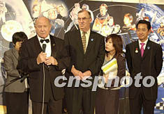 中國(guó)首次載人航天獲得成功,成為17日在日本東京閉幕的第十八屆世界宇航員會(huì)議的熱門(mén)話題,今晚閉幕式后,本屆大會(huì)的三位主席在共同會(huì)見(jiàn)記者時(shí)盛贊中國(guó)給本次大會(huì)帶來(lái)了極為出色的禮物。中新社圖