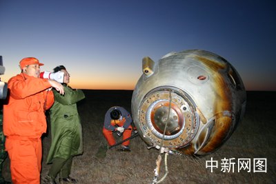“神舟”五號返回艙成功著陸。作者:孫陽