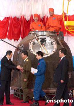 十月十八日,中國(guó)神舟五號(hào)載人飛船回收艙搭載物品開艙儀式在中國(guó)航天科技集團(tuán)公司北京空間技術(shù)研制試驗(yàn)中心舉行。中國(guó)首位航天員楊利偉向相關(guān)部門代表轉(zhuǎn)交從太空歸來(lái)的“貴賓”。搭載物品中包括來(lái)自臺(tái)灣地區(qū)的作物種子。中新社記者:張煒