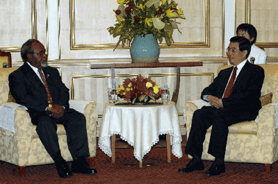 中新網(wǎng)10月20日電 新華網(wǎng)報道說,中國國家主席胡錦濤19日下午在曼谷會見了巴布亞新幾內(nèi)亞總理索馬雷。胡錦濤說,中國和巴新兩國人民有著長期友好交往的歷史。近年來通過我們雙方的共同努力,兩國關系順利發(fā)展。雙方高層交往不斷,經(jīng)貿(mào)合作成果顯著,巴新已成為中國在南太島國中最大的貿(mào)易伙伴。在太平洋島國論壇、亞太經(jīng)合組織、聯(lián)合國等地區(qū)和國際組織中,我們雙方也進行了密切的合作。