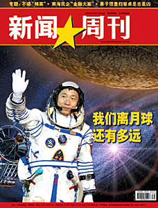 中新網(wǎng)10月22日電 楊利偉的一小步,是中國(guó)的一大步。這一步中國(guó)跨了很多年!拔覀冸x月球還有多遠(yuǎn)?”這是下周出版的總第153期中國(guó)《新聞周刊》在封面提出的問(wèn)句。
