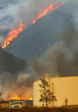 已經(jīng)被選下臺的加州州長戴維斯現(xiàn)在擔(dān)任滅火總指揮。他宣布加州處于緊急狀態(tài),并向布什總統(tǒng)求助。