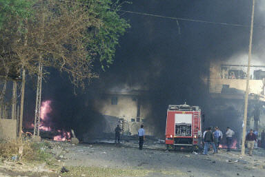 10月27日,國際紅十字會駐巴格達辦事處前發(fā)生了一起汽車爆炸案。強烈的爆炸聲響徹了巴格達市,爆炸產生的煙柱沖向了天空。兩輛汽車完全被毀;行人四處逃散,多輛救護車也趕到了現(xiàn)場。