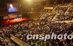 中國(guó)首次載人航天飛行代表團(tuán)11月3日在香港伊利莎白體育館與2500多名香港中、小學(xué)生舉行見(jiàn)面會(huì)。中新社記者:錢(qián)興強(qiáng)