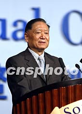 圖:鄭必堅在博鰲亞洲論壇2003年會上發(fā)表演講