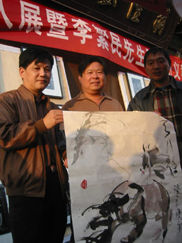 “太陽星城愛心之旅”的成員——著名畫家李繁民先生現(xiàn)場揮毫作畫,頃刻之間,一匹匹栩栩如生的駿馬就躍然紙上。在旁觀者中,有不少人是書畫愛好者,他們就著李老師的駿馬圖點(diǎn)評,贊嘆聲不絕于耳。杭州的陳先生也是畫馬的愛好者,他說:“李老師的畫已經(jīng)跳出了傳統(tǒng)畫馬的局限,有自己的創(chuàng)新之處!