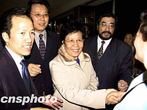 紐約是陳玉杰此次北美之行的第二站,陳玉杰今天下午結(jié)束在加拿大的訪問后前往紐約。陳玉杰見到等候在機(jī)場(chǎng)的華僑華人立即伸出雙手迎上去,她認(rèn)出了曾經(jīng)見過面的僑胞,與新朋老友相逢的欣喜躍然臉上。陳玉杰對(duì)媒體說:“感到非常高興!