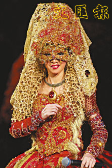 阿梅以一襲由劉培基為她設(shè)計(jì)的紅色底鑲金珠片的宮廷婚紗出場(chǎng),頭戴金絲線的頭紗,高貴華麗。阿梅以一首《夢(mèng)共醉》揭開演唱會(huì)序幕,雖然開秀前有傳她病情告急,體力不支,但阿梅中氣十足,歌聲響亮,咬字清晰,還輕擺舞姿兼跪地,以行動(dòng)辟謠,贏得全場(chǎng)一片喝采聲。