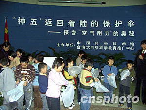 中新社北京十一月九日電(記者孫自法)“‘神舟’五號飛船返回艙著陸前為什么要用降落傘?”、“降落傘的作用是什么?”……海峽兩岸科普界攜手推出的“中國科技館大自然科學(xué)實(shí)驗(yàn)活動”九日以“神舟”五號返回著陸為切入點(diǎn),讓參與活動的小朋友在動手實(shí)踐中探索空氣阻力的奧秘。