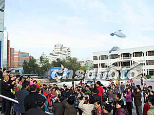 “神舟”五號飛船載人航天飛行取得圓滿成功,激起了中國廣大青少年兒童對航天科學(xué)的濃厚興趣。在活動現(xiàn)場,小朋友們對“神舟”五號載人飛船發(fā)射、運(yùn)行、返回、著陸各個階段非常熟悉,他們爭先恐后地回答指導(dǎo)老師的提問,人人動手制作“降落傘”,驗(yàn)證空氣阻力的原理和奧秘。