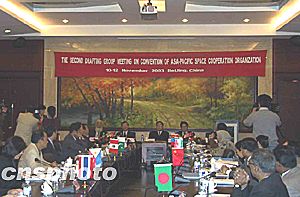 據(jù)悉,今年八月,亞太空間合作組織在泰國(guó)曼谷舉行章程起草組第一次會(huì)議,與會(huì)代表一致同意將亞太空間合作組織總部設(shè)在中國(guó)。十日舉行的第二次會(huì)議將結(jié)束亞太空間合作組織章程所有條款的討論,在獲得有關(guān)國(guó)家政府批準(zhǔn)后,亞太空間合作組織即可正式成立。