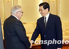 胡錦濤今天在人民大會(huì)堂會(huì)見(jiàn)了美國(guó)前國(guó)務(wù)卿基辛格博士,賓主進(jìn)行了友好交談。胡錦濤對(duì)基辛格長(zhǎng)期致力于中美友好、為中美關(guān)系正;鞒龅臍v史性貢獻(xiàn)表示贊賞。