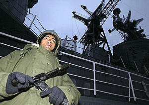 2003年11月10日16時(shí)30分,一支印度海軍編隊(duì)?吭谥袊(guó)上海的海軍軍港,這支編隊(duì)由排水量為4974噸的“蘭吉特”(INS RANJIT)號(hào)驅(qū)逐艦作為旗艦,共3艘艦艇組成。他們對(duì)上海進(jìn)行5天的訪問(wèn),并將于12日同中國(guó)海軍在東海進(jìn)行聯(lián)合軍事演習(xí)。據(jù)悉,這是印度海軍艦隊(duì)第4次訪問(wèn)上海。(艦船知識(shí)網(wǎng)絡(luò)版 圖)