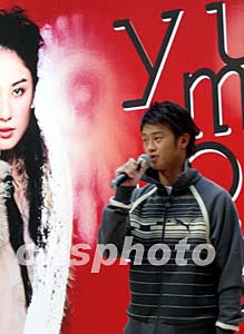 香港歌手鄭希怡15日在時代廣場舉行新碟發(fā)布會,“師弟” 吳浩康到場獻唱助威。中新社記者:譚達明