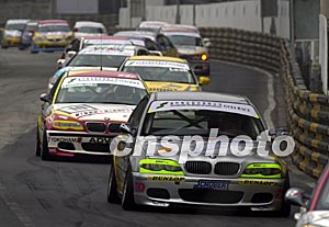 澳門(mén)第五十屆格蘭披治大賽車(chē)十六日進(jìn)行澳門(mén)博彩股份公司東望洋大賽,圖為比賽正在激烈進(jìn)行中。中新社記者:李剛