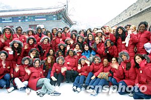 組圖:世界小姐雪中登北京八達(dá)嶺長城