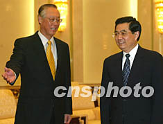 胡錦濤在會見中積極評價了兩國關(guān)系。他說,中新建交以來,雙邊關(guān)系不斷發(fā)展。兩國領(lǐng)導(dǎo)人保持密切交往,雙方相互尊重、相互理解,經(jīng)常就共同關(guān)心的問題交換意見,為兩國關(guān)系的發(fā)展注入了生機和活力。兩國在經(jīng)貿(mào)等領(lǐng)域的合作成果突出,在地區(qū)和國際事務(wù)中也進行了良好的磋商和協(xié)調(diào)!爸行码p邊合作聯(lián)合委員會”的成立,標(biāo)志著中新合作又邁上了一個新臺階。