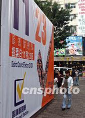 香港特別行政區(qū)區(qū)議會(huì)選舉將于十一月二十三日進(jìn)行投票,在香港街頭區(qū)議會(huì)選舉投票日標(biāo)語(yǔ)引人注目。中新社記者:錢興強(qiáng)