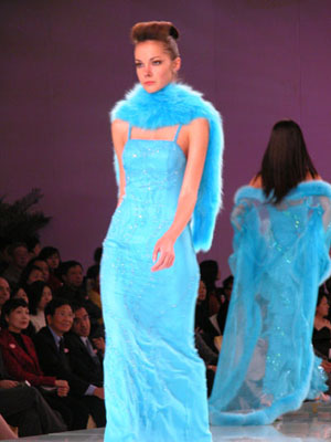 中國國際時(shí)裝周NE·TIGER 2003/2004高級(jí)皮草晚裝,個(gè)性奢華寶藍(lán)系列。